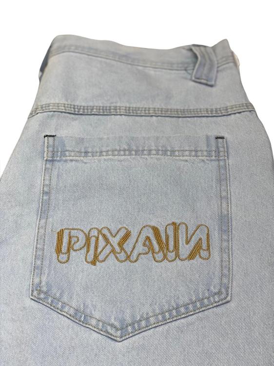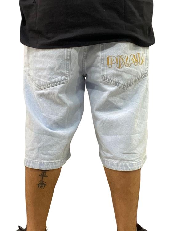 BERMUDA JEANS PIXA-IN AZUL CLARA DAQUELE MODELO LARGO QUE VCS JA CONHECEM. FIQUEM ATENTOS NA TABELA DE MEDIDAS!!!